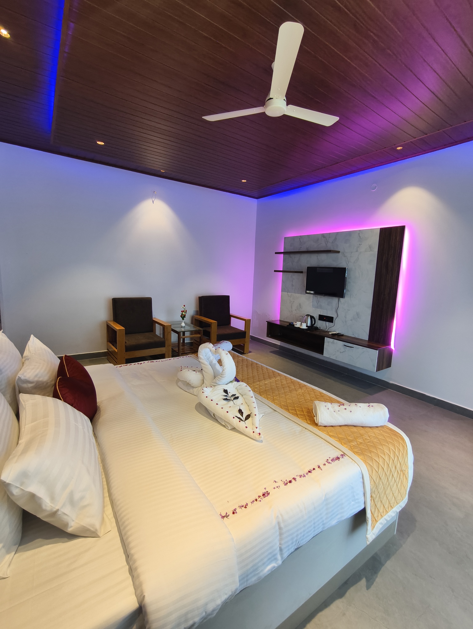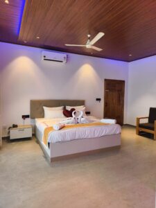 Unwind in a beautifully designed independent cottage that offers the perfect blend of comfort, privacy, and nature. This spacious, air-conditioned room features a plush king-size bed, ensuring a restful and luxurious stay. Step out onto your private balcony and soak in the breathtaking views of Coorg’s serene backwaters and lush green landscapes, surrounded by the calming beauty of nature.